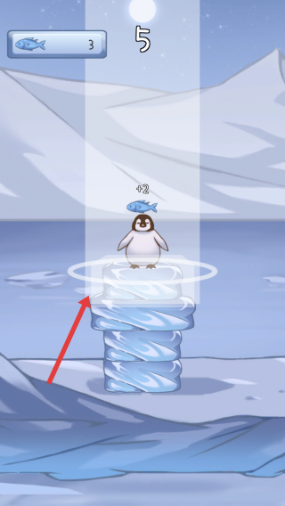2、单指点击操作:点击屏幕控制企鹅跳跃,精准落在障碍物中心点触发“完美跳跃”,获取更高分数与鱼奖励。