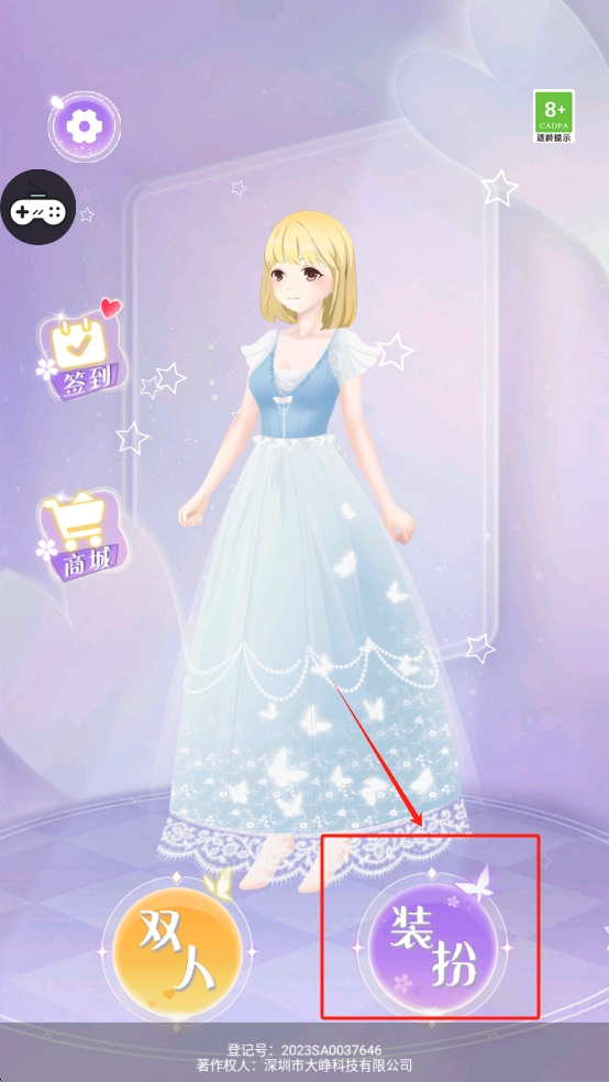 2、在游戏主界面,点击“装扮”按钮,开始装扮游戏。