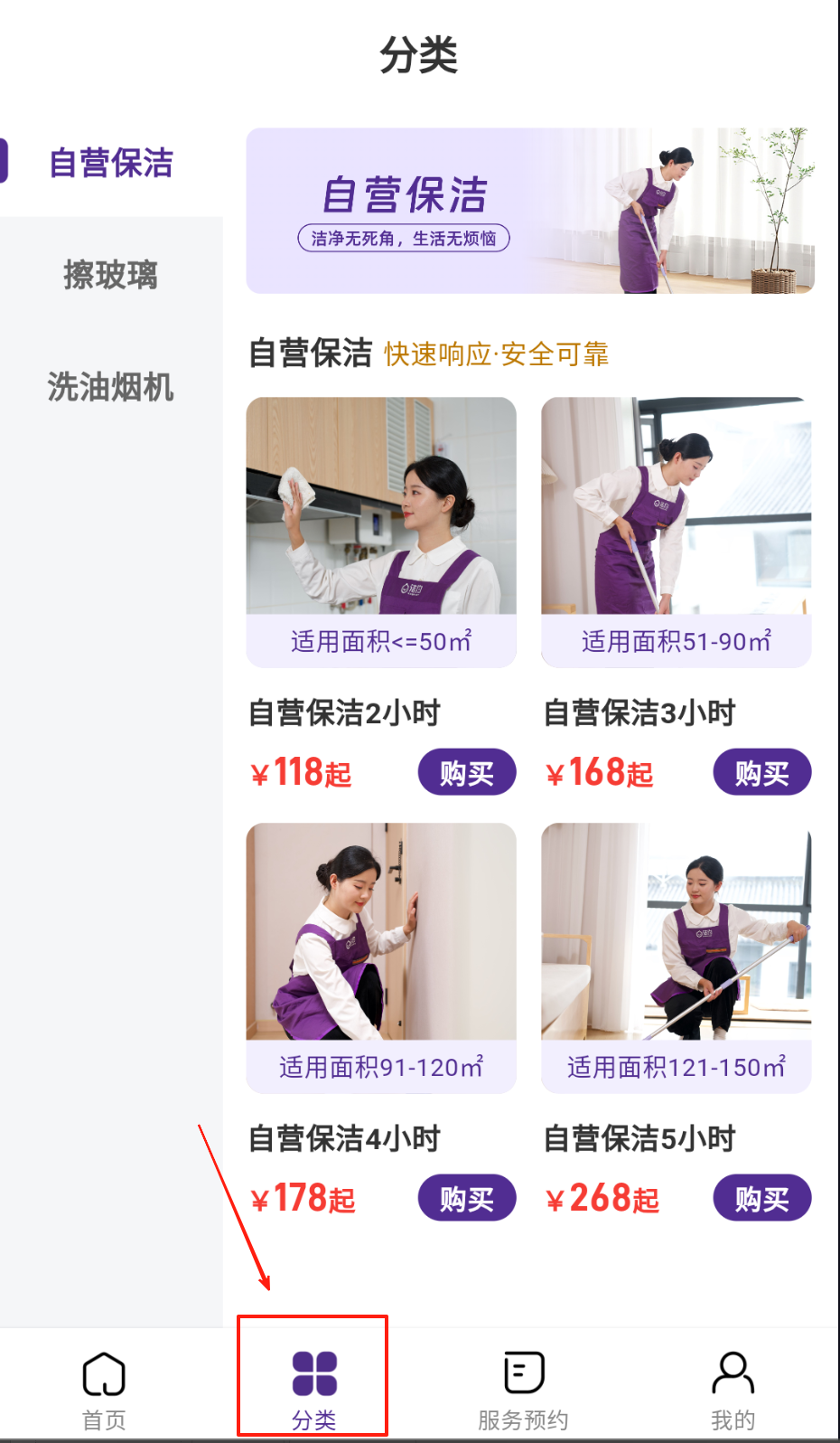 提供预约保洁、包月套餐及附近阿姨上门服务