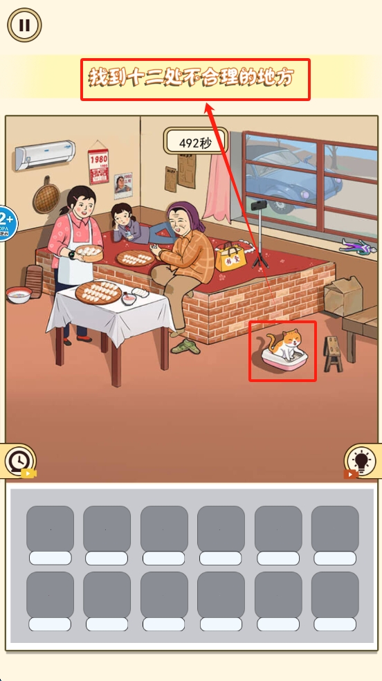 3、进行游戏,在游戏模式中,按照提示找到图中不合理的地方,点击相应位置进行标记。