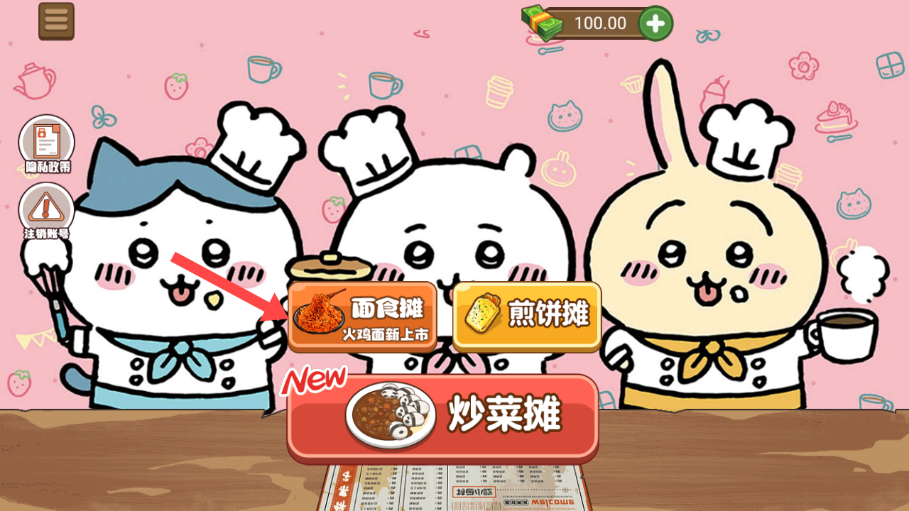 2、进入游戏主界面后,选择摊位(如【面食摊】【煎饼摊】【炒菜摊】)开始经营。