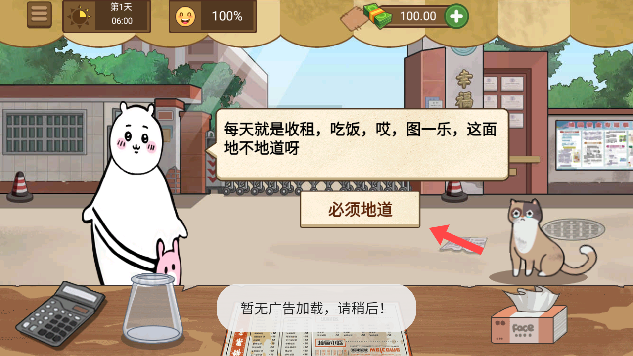 3、在游戏内场景中,面对对话“每天就是收租,吃饭,哎,图一乐,这面地不地道呀”,点击【必须地道】按钮回应,推进游戏剧情。