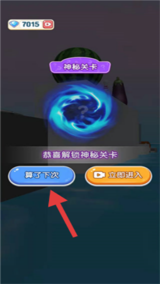 3、解锁神秘关卡后,按箭头指向点击【算了下次】按钮,放弃立即进入,返回原游戏流程。