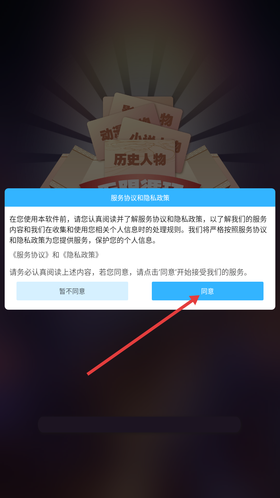 1、进入游戏,点击【同意】。