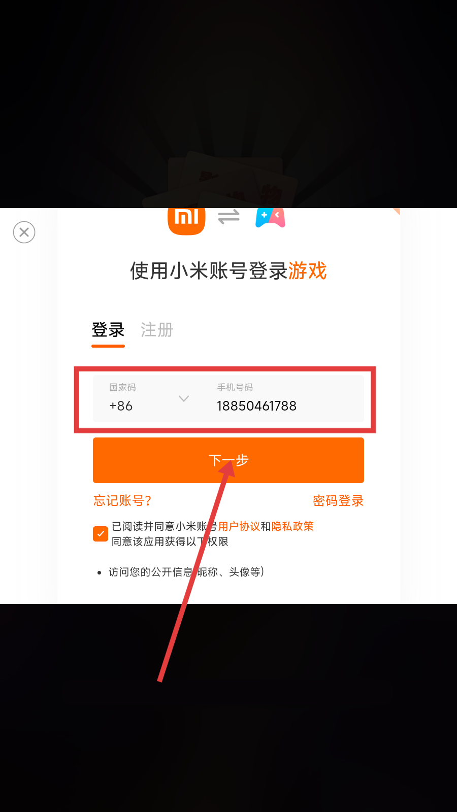 2、选择手机号登录,输入手机号码,点击【下一步】。