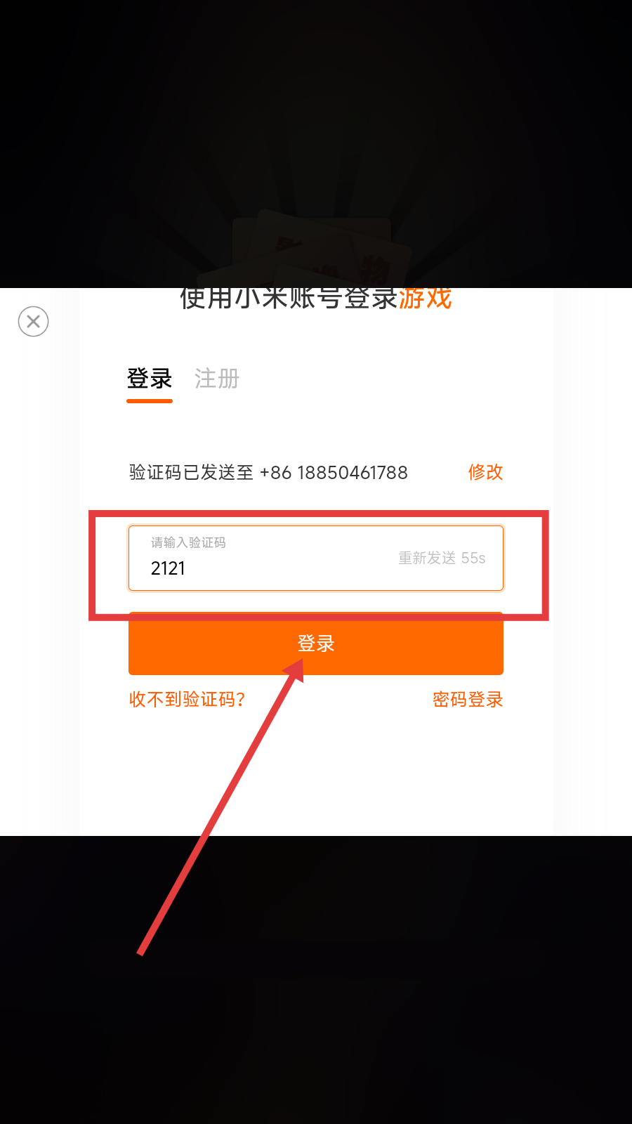 3、输入验证码,点击【登录】,即可开始游戏。