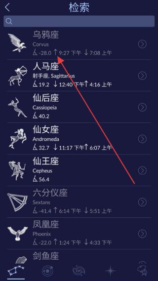 3、进入右下角,点击【搜索】可以查看需要的星象。