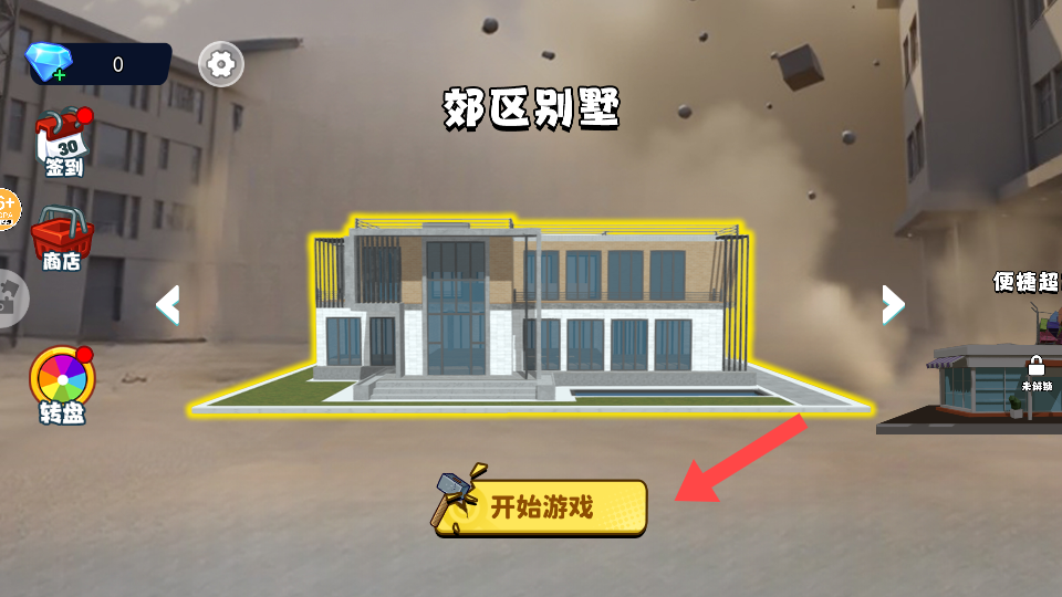 1、点击【开始游戏】进入【郊区别墅】场景,准备帮助邻居收拾修理家具。