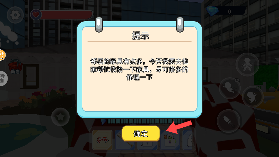 2、根据提示,在游戏中积极收拾邻居家家具,尽可能多地进行修理操作。