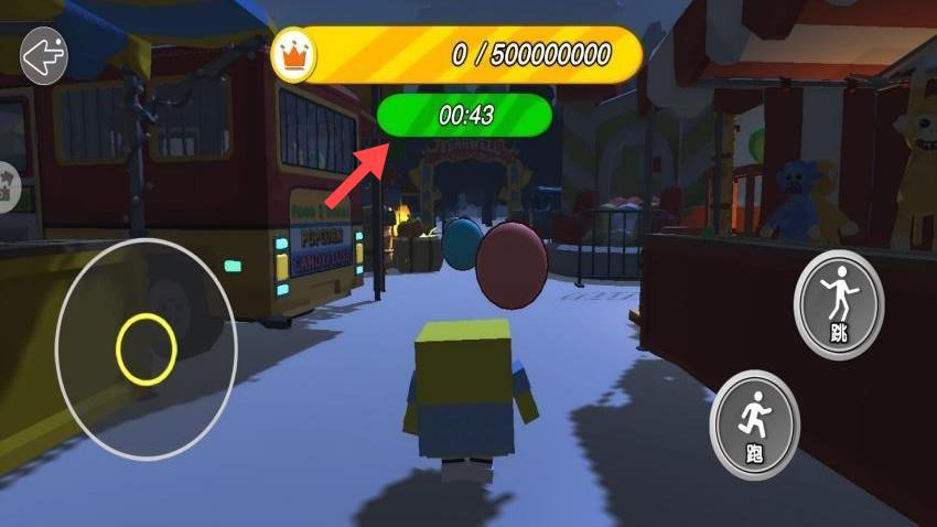 2、留意屏幕上方的时间条(如00:46、00:43等),在规定时间内尽可能收集场景中的物品(如彩色球体等),提升分数。