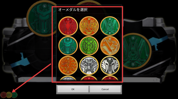 1、在【オーメダルを選択】界面挑选所需的徽章。