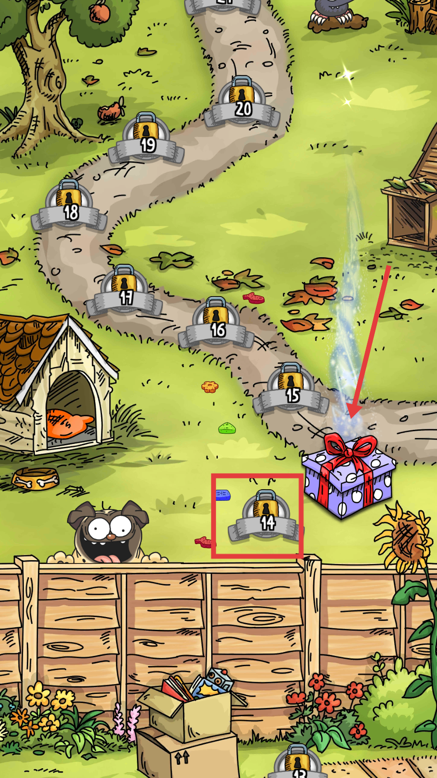 3、推进关卡进度,解锁如【14】等带有锁标识的后续关卡以获取奖励。