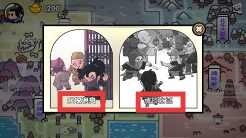 1、在游戏中可通过点击【打探消息】【魂坛比试】等选项来推进剧情或参与活动。