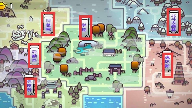 3、查看地图前往【消息院、学院、后勤处、魂技所、北斗大森林、魂环殿】等地点,开展对应活动。