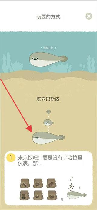 2、等虚无鱼BasPi变成小鱼苗状态就可以开始喂食啦,投放大量鱼粮,决不让我们的鱼崽饿着。