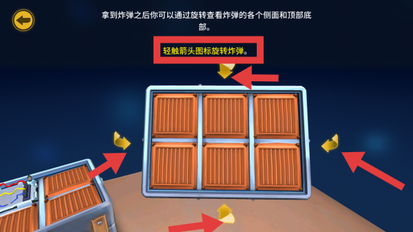 3、拿到炸弹后,轻触箭头图标旋转炸弹,以便查看炸弹的各个侧面和顶底部。