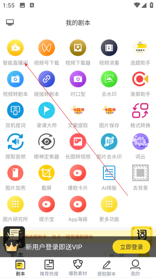 3、海量剧本资源:内置三千万条爆款剧本,覆盖直播带货、情感分享、知识科普等热门领域,一键调用加速内容构思。