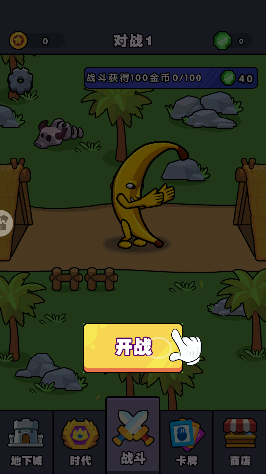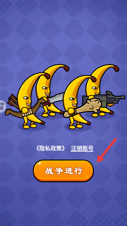 1、进入游戏界面,点击【战争进行】按钮,正式开启游戏进程,开启香蕉角色的战斗之旅。