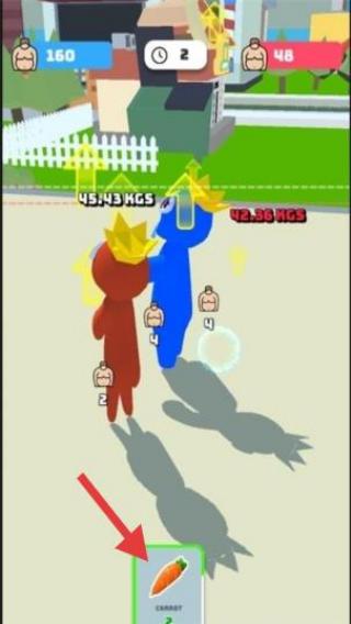 1、在游戏界面中,按箭头指向点击下方的“胡萝卜”图标,可能用于获取资源或推进游戏。