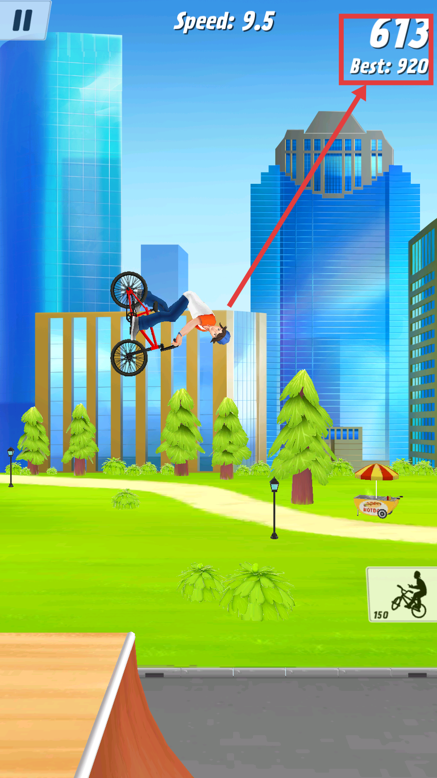 1、游戏中留意右上角的【分数】和【Best(最佳成绩)】,通过完成特技提升分数,目标超越最佳成绩。