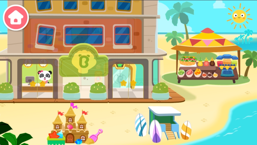 1、多元场景体验:游戏包含海滩、森林、城市等丰富场景,每个场景都设计有特色互动元素。孩子们可以自由探索。