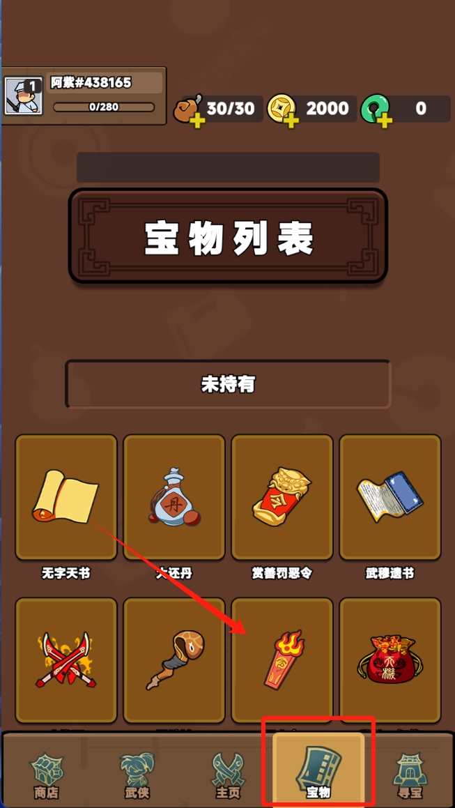 3、在宝物界面,查看并选择你想要获取的宝物。宝物可以提升角色的能力和战斗力,是游戏中的重要资源。