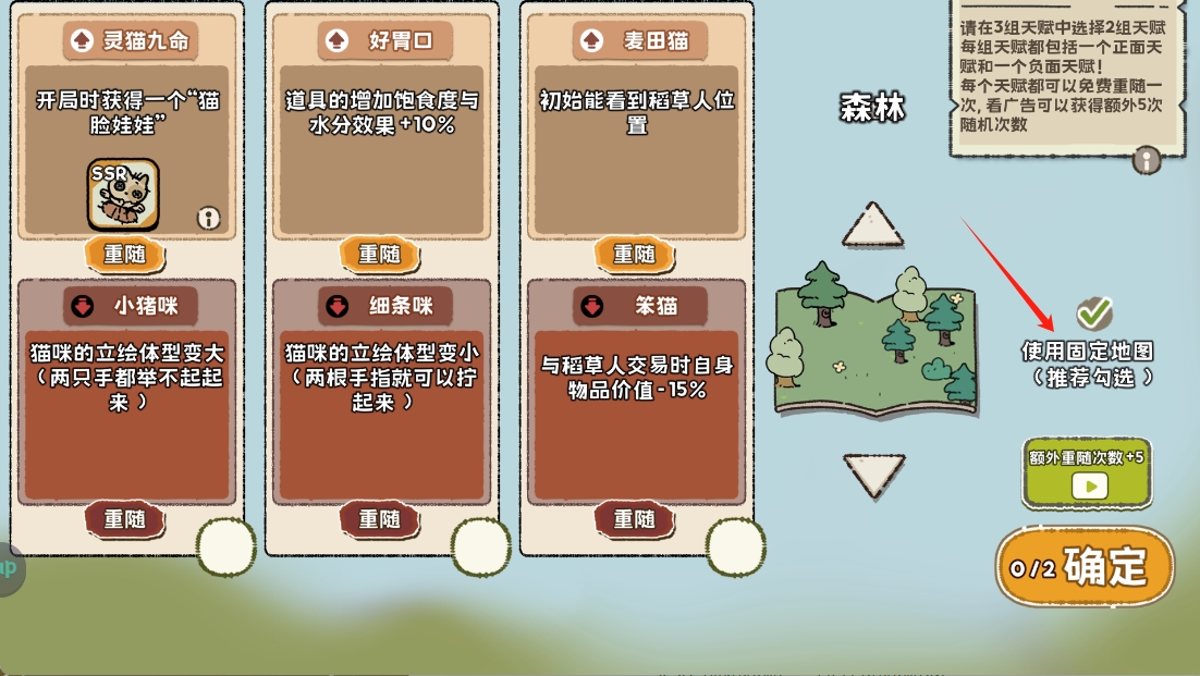3、选择天赋并确认。在天赋选择界面,选择适合的天赋组合,点击确定,为冒险之旅做好准备。