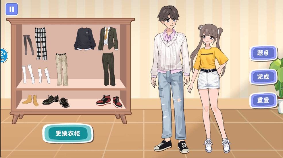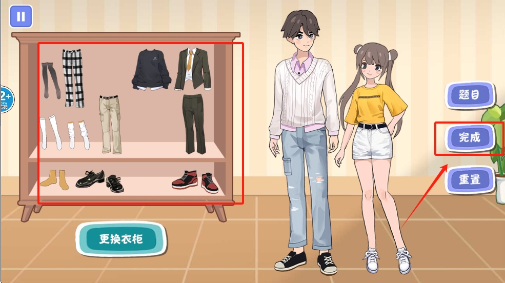 4、最后,在游戏界面中,选择衣物并点击“完成”按钮提交你的搭配,或点击“重置”按钮重新选择。