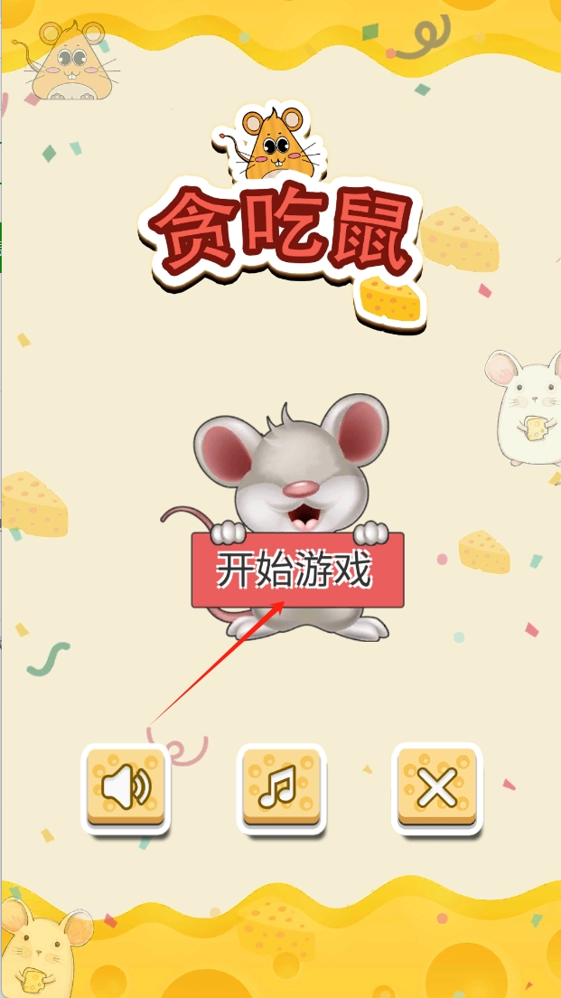 1、点击“开始游戏”按钮,进入游戏主界面,准备开始贪吃鼠的冒险之旅。