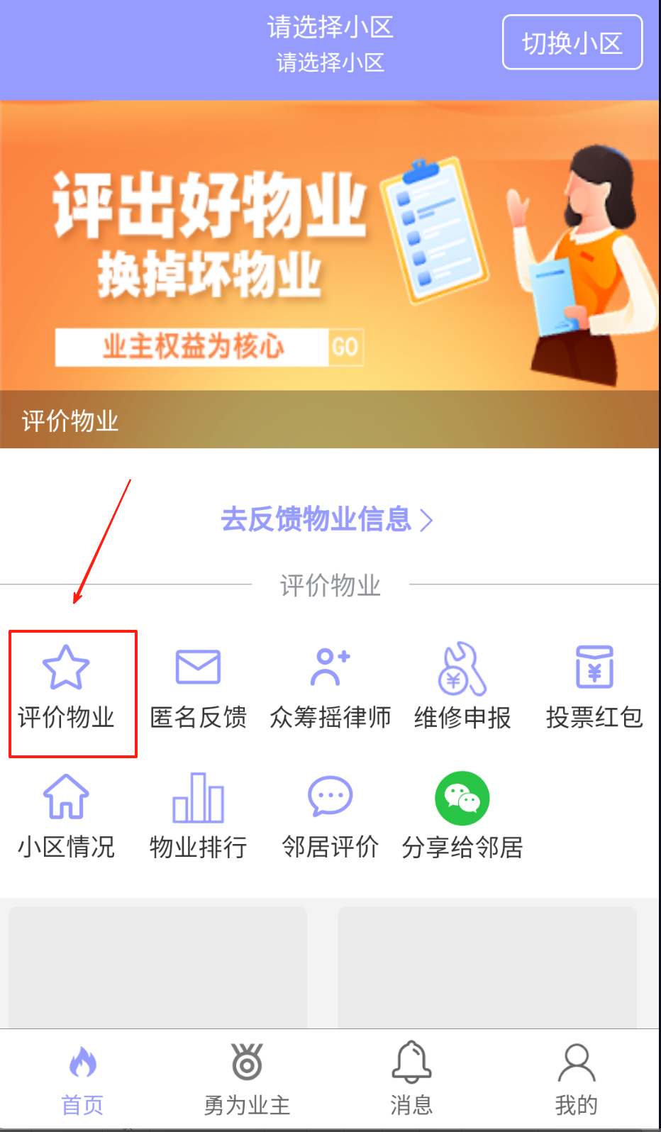 2、通过物业评价板块发表服务体验,使用维修申报功能填写问题详情并上传现场照片提交工单。