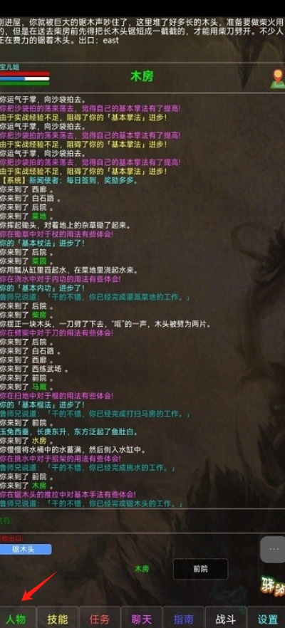 2、通过点击“人物”按钮,查看角色状态和属性,了解当前角色发展情况。