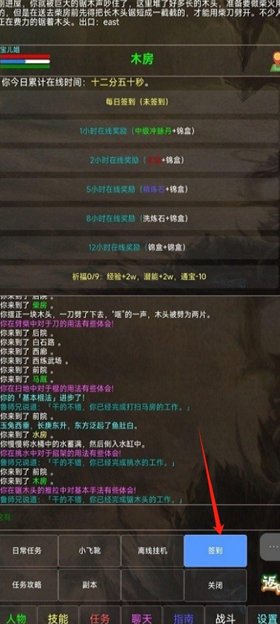 3、点击“签到”按钮,领取每日奖励,积累资源,为生存挑战做好准备。