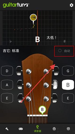 1、打开guitartuna吉他调音器,点击【自动】。