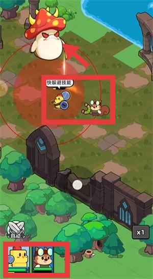 2、进入战斗后,点击角色头像,根据红色攻击范围提示,躲避敌人攻击。