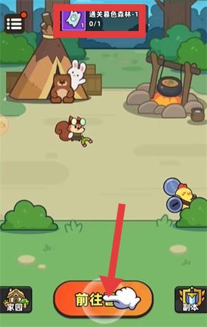 1、点击界面下方【前往】按钮,开启【通关暮色森林-1】关卡。
