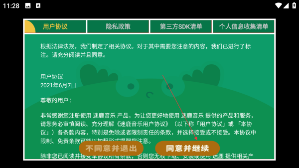 1、打开迷鹿音乐钢琴古筝,点击【同意协议】。