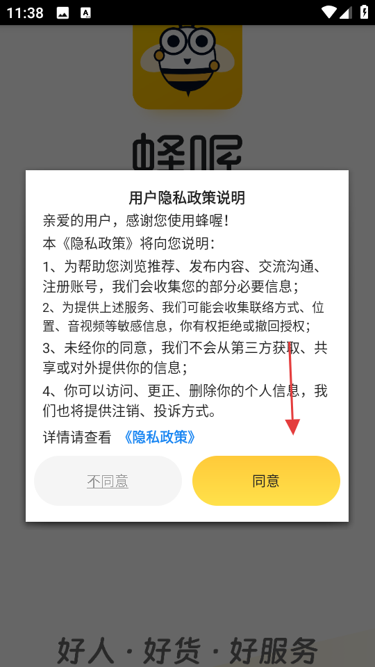 1、初次使用点击【同意】接受隐私政策进入软件。