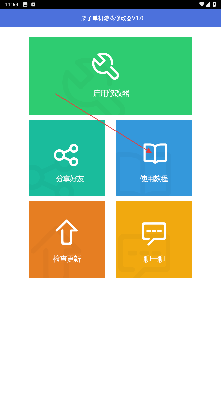 1、打开【栗子单机游戏修改器】,点击【使用教程】了解操作方法。