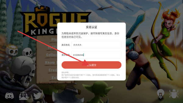 1、进入游戏,点击【实名认证】。