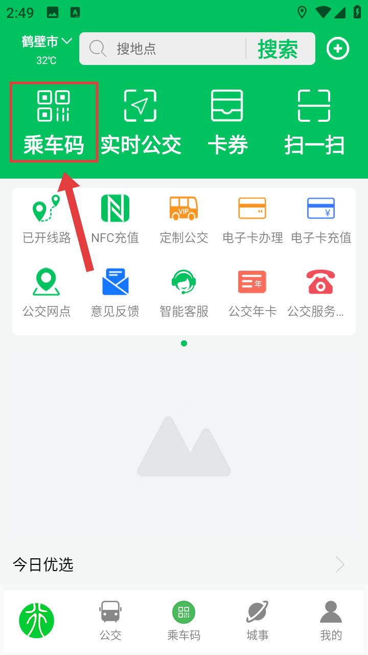3、最后,用户登录完成后,点击指标方框内【乘车码】即可支付。