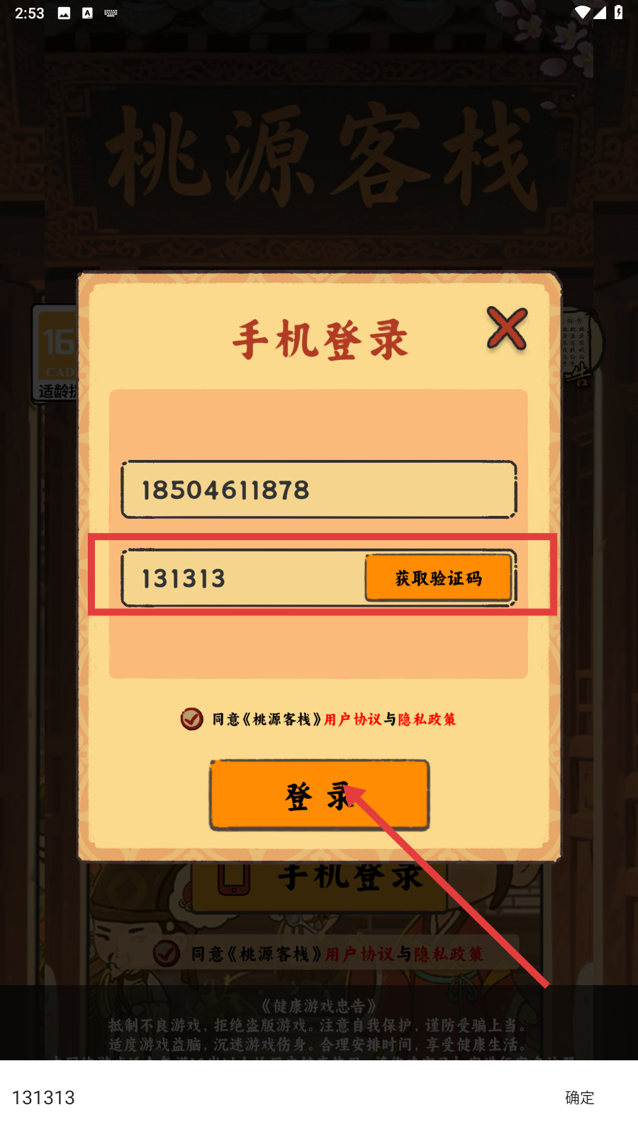 3、输入验证码,点击【登录】,即可开始游戏。