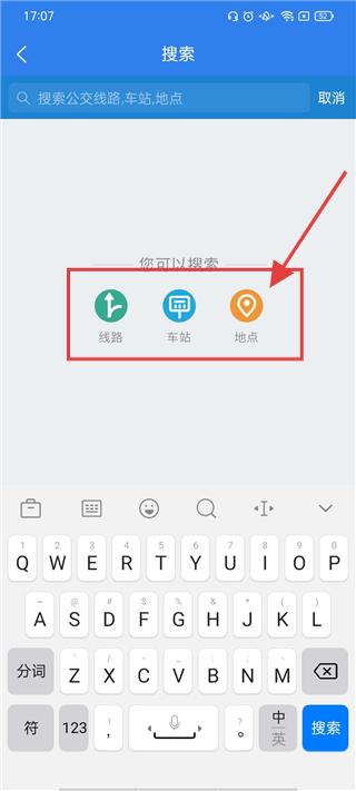 2、在搜索页选择【线路/车站/地点】进行搜索。