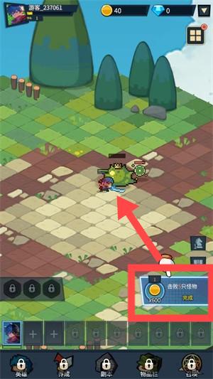 3、游戏场景中,留意右下角【击败X只怪物】任务提示,按要求完成任务获取奖励,推动游戏进程。