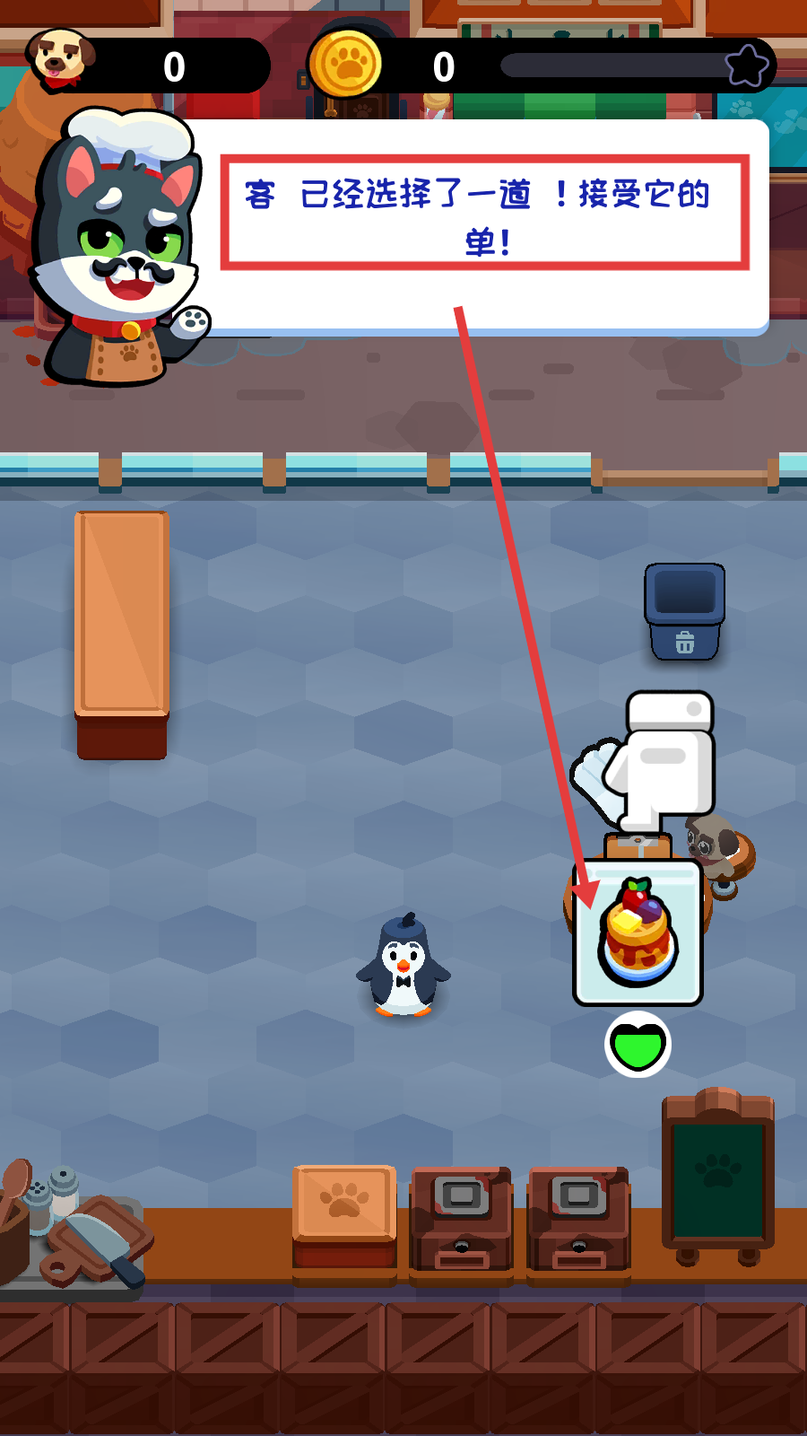 2、萌宠换装系统:为浣熊服务员更换围裙或厨师帽,不同装扮可解锁加速烹饪、清理加速等5种实用buff。