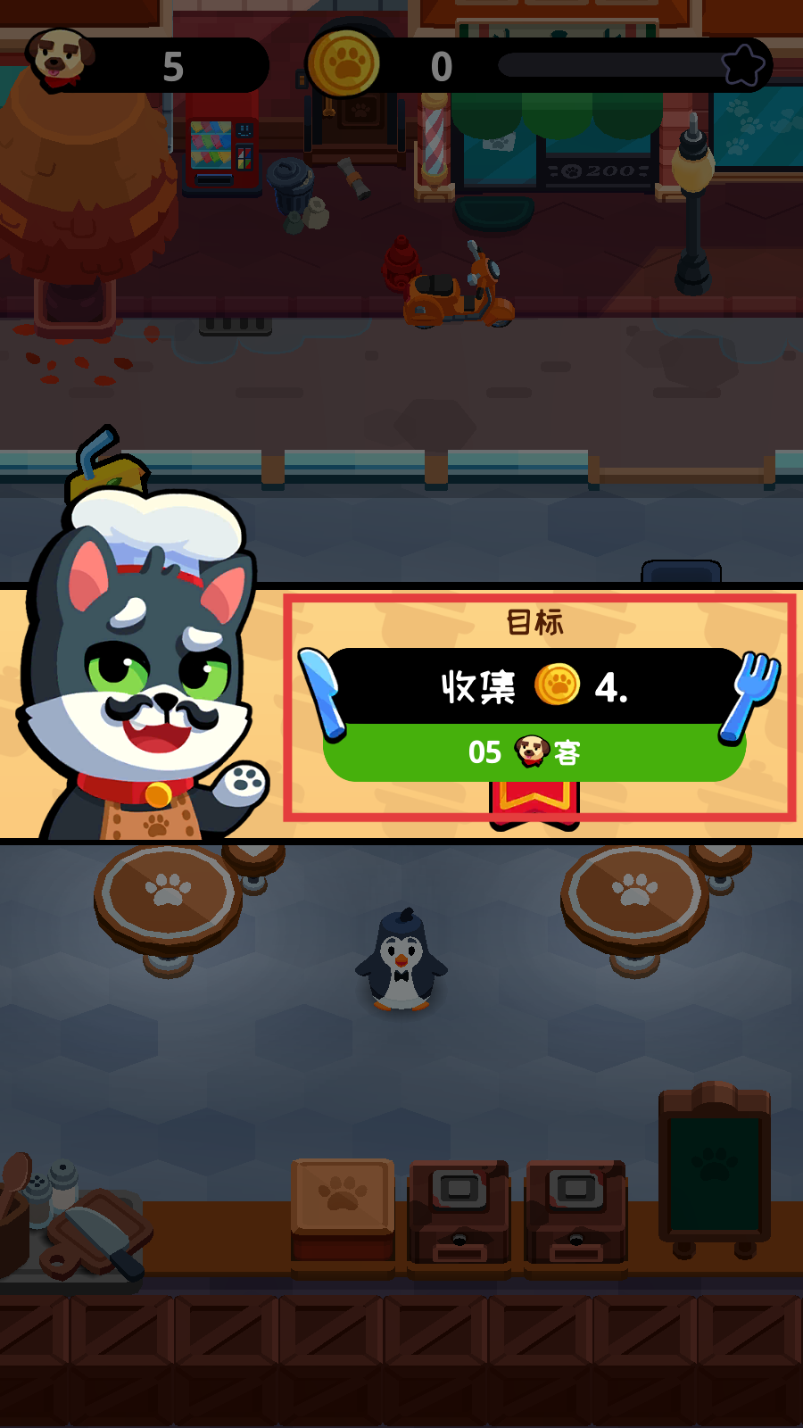 3、按照目标要求【收集】指定金币数量并接待相应数量的【客人】。