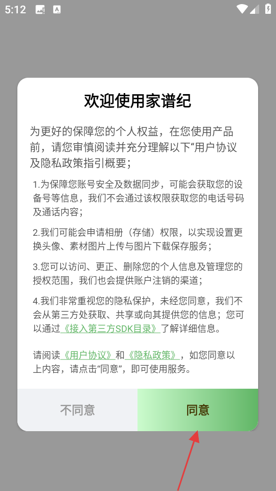 1、初次使用点击【同意】接受用户协议及隐私政策。