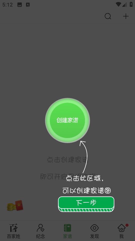 3、在界面中点击【创建家谱】开启家谱创建流程。
