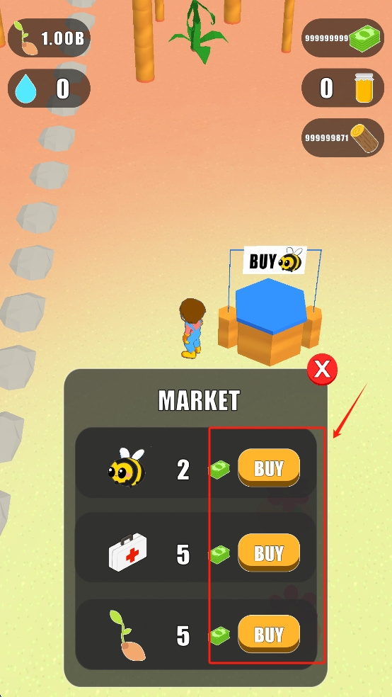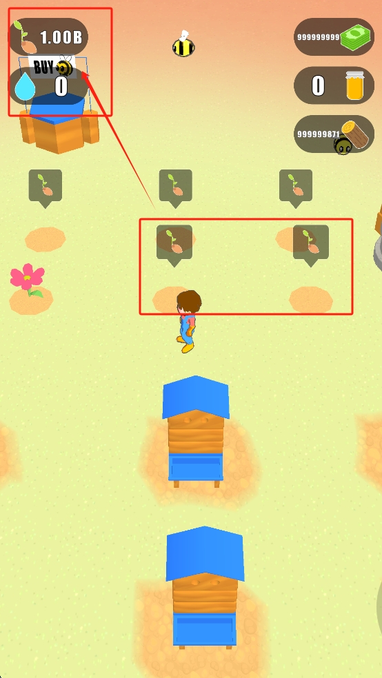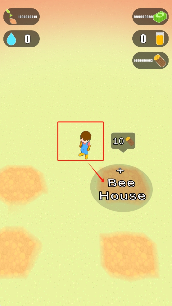 1、拖动屏幕控制人物到“Bee House”按钮并支付相应的金币来建造蜂房。