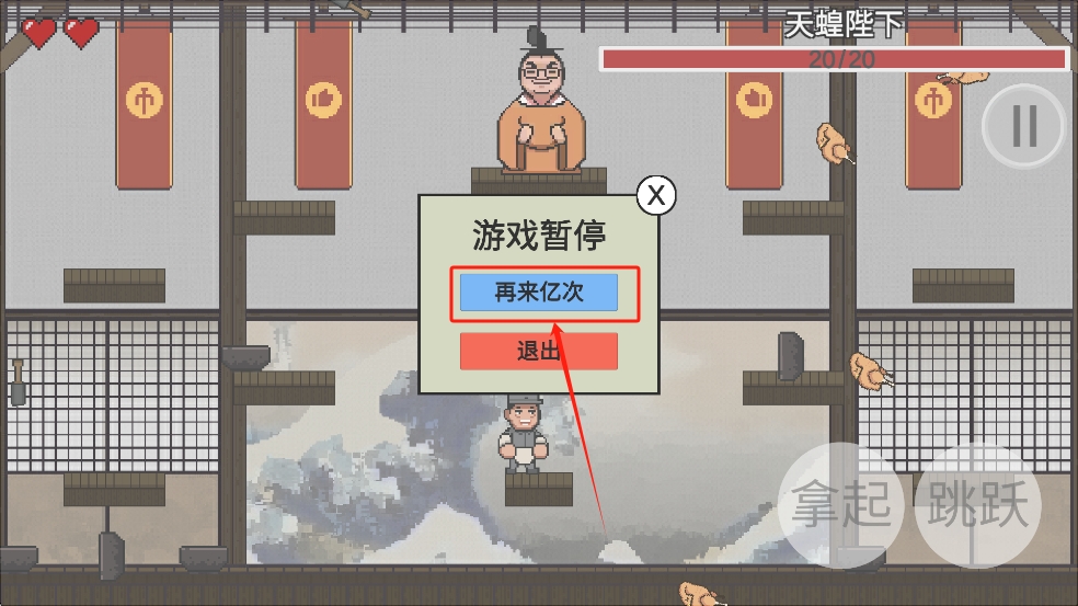 3、重新开始游戏,如果游戏暂停或失败,点击“再来亿次”按钮以重新开始游戏。