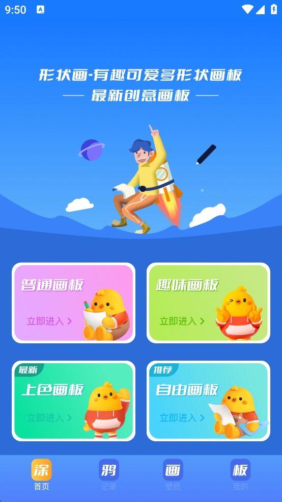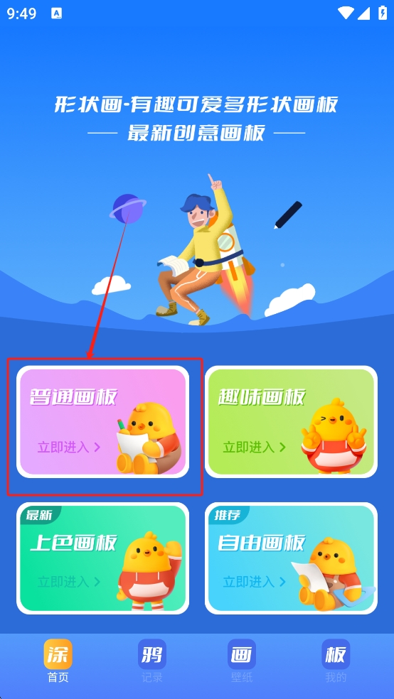 2、在应用首页,选择一个你喜欢的画板类型,例如“普通画板”,然后点击“立即进入”开始创作。